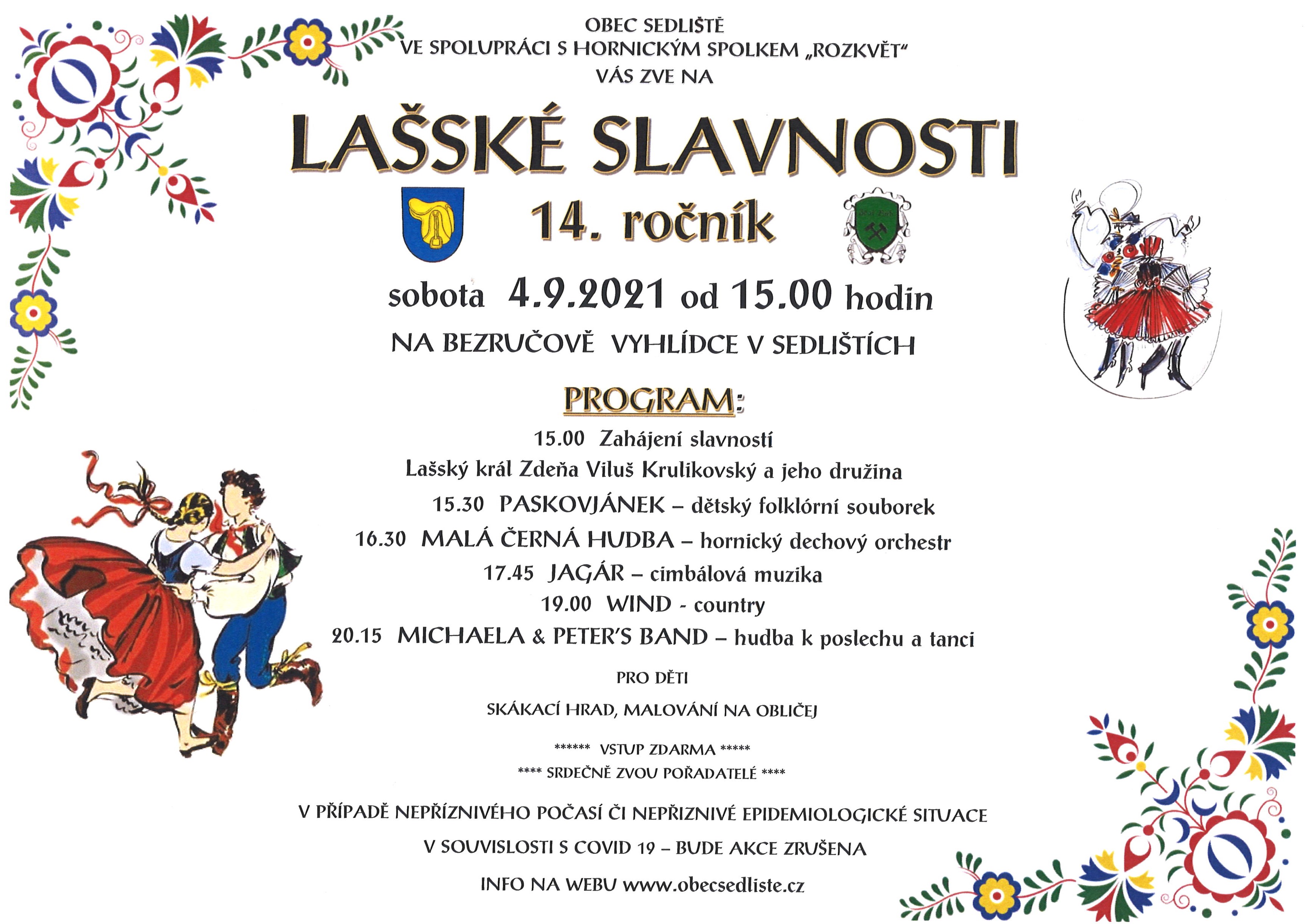 V sobotu 4. září 2021 od 15 hodin Vás srdečně zveme na 14. ročník Lašských slavností v Sedlištích.