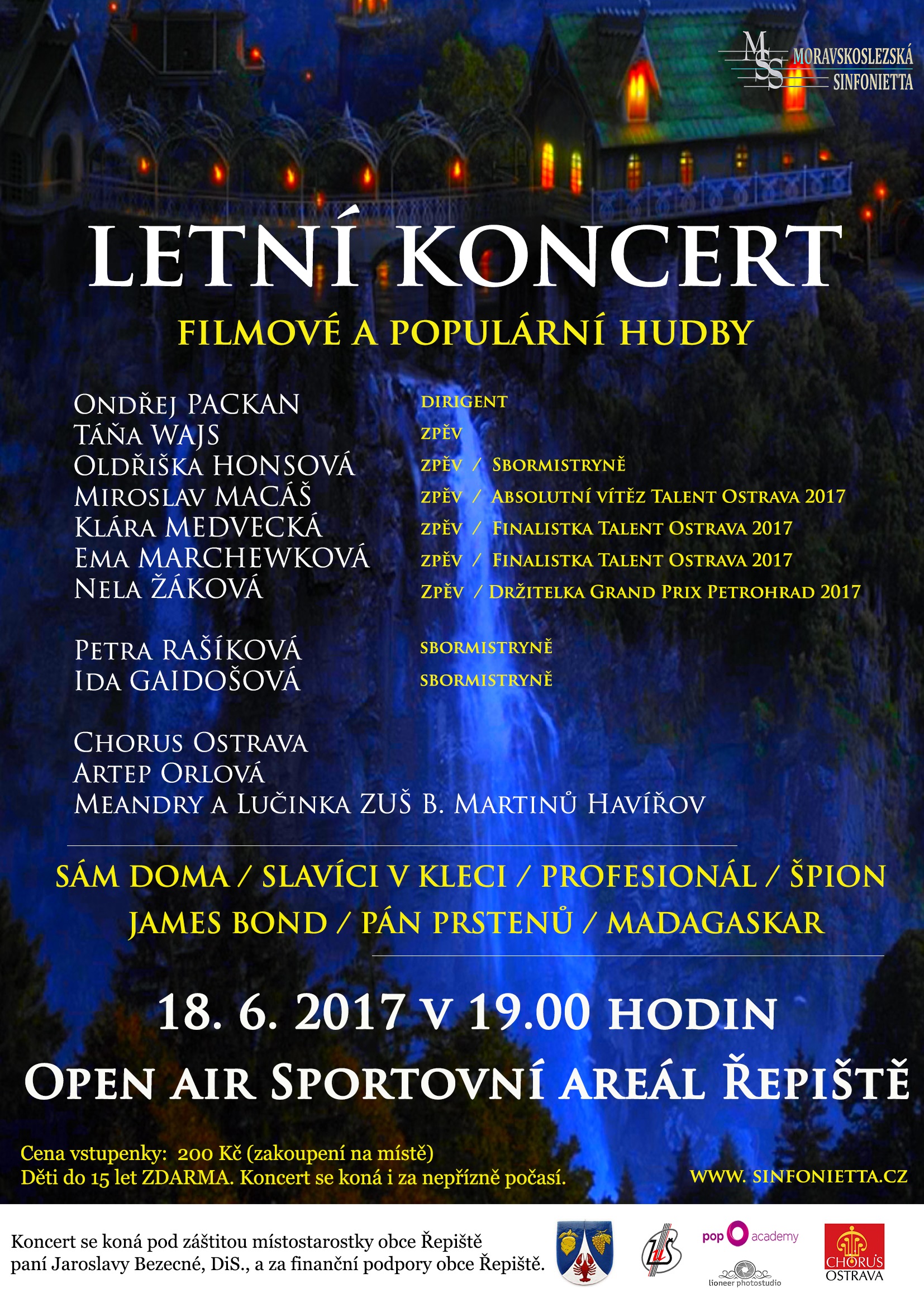 V neděli 18. června 2017 od 19 hodin Vás zveme na Letní koncert filmové a populární hudby Moravskoslezské sinfonietty.