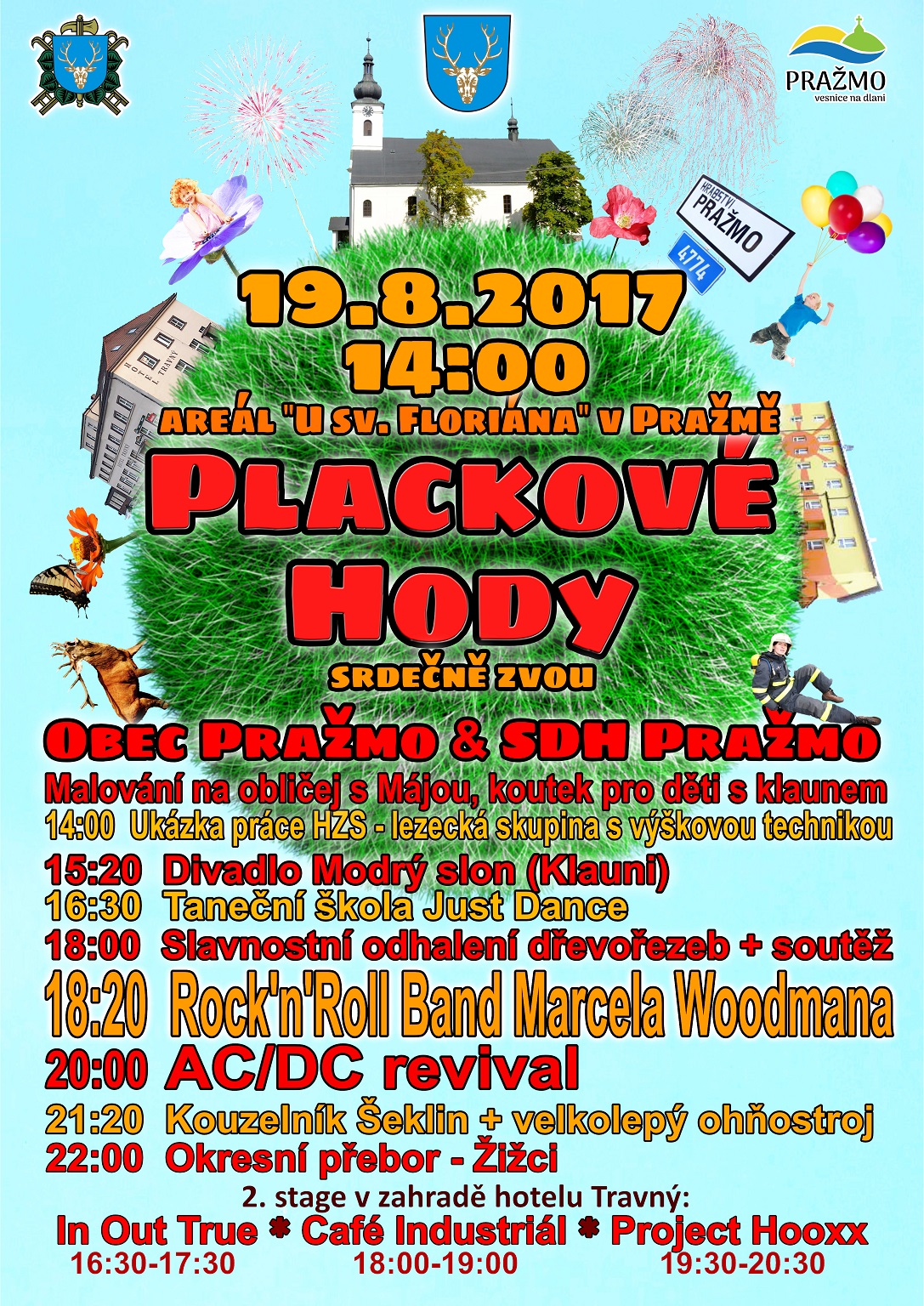 V sobotu 19. 8. 2017 od 14 hodin Vás zveme na tradiční Plackové hody spojené s bohatým hudebním programem a atrakcemi pro děti. Dobrovolné vstupné.
