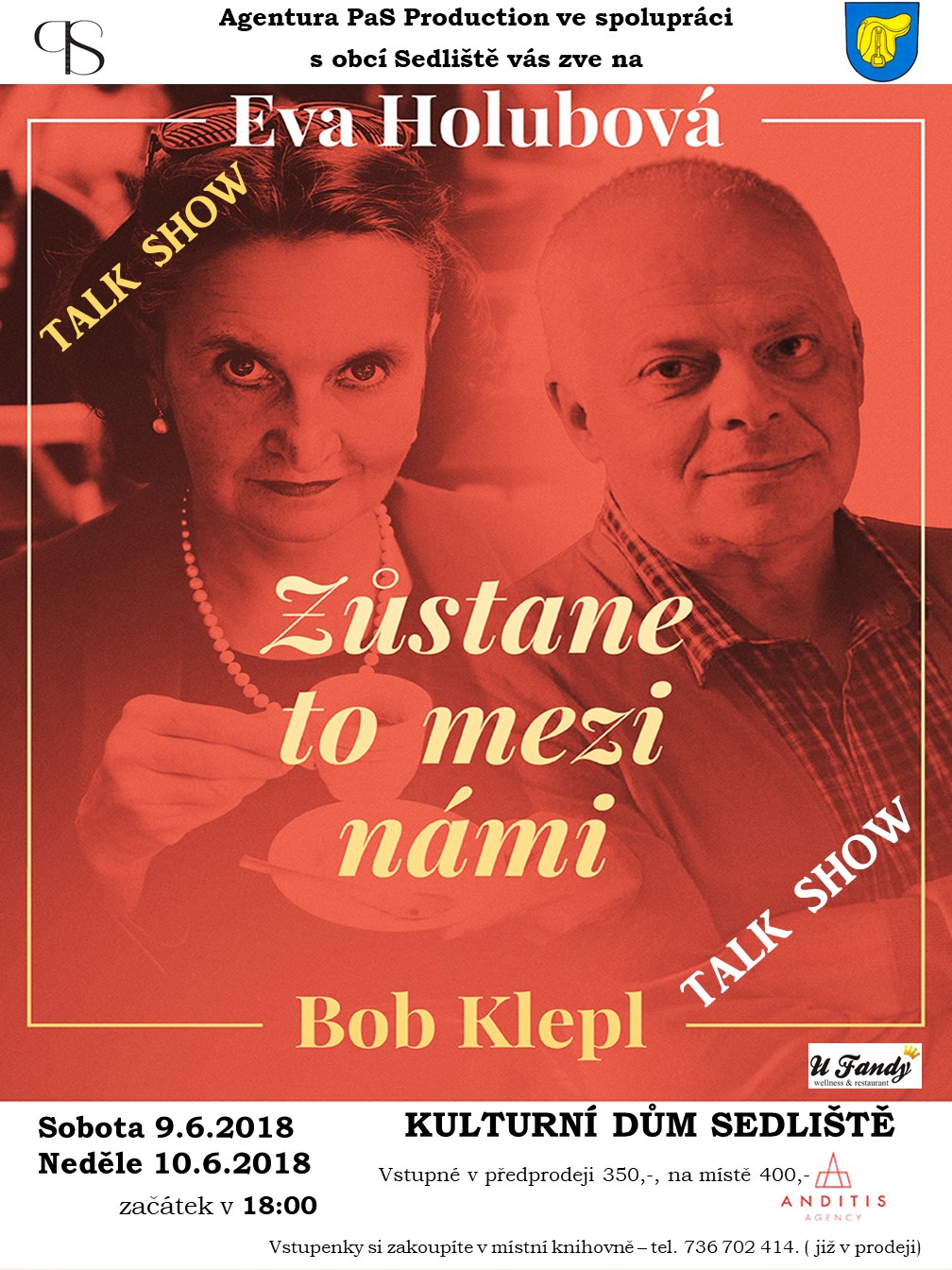 V neděli 10. června 2018 od 18 hodin vás srdečně zveme na talk show Evy Holubové a Boba Klepla "Zůstane to mezi námi".