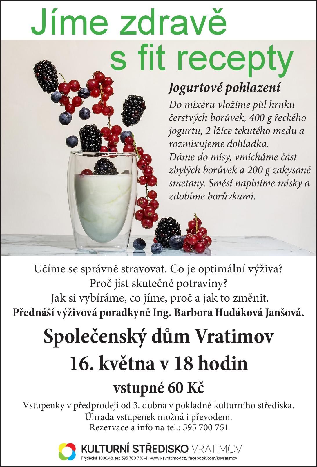 Ve středu 16. května 2018 od 18 hodin vás srdečně zveme do KS Vratimov na přednášku výživové poradkyně Ing. Barbory Hudákové Janšové "Jíme zdravě s fit recepty.