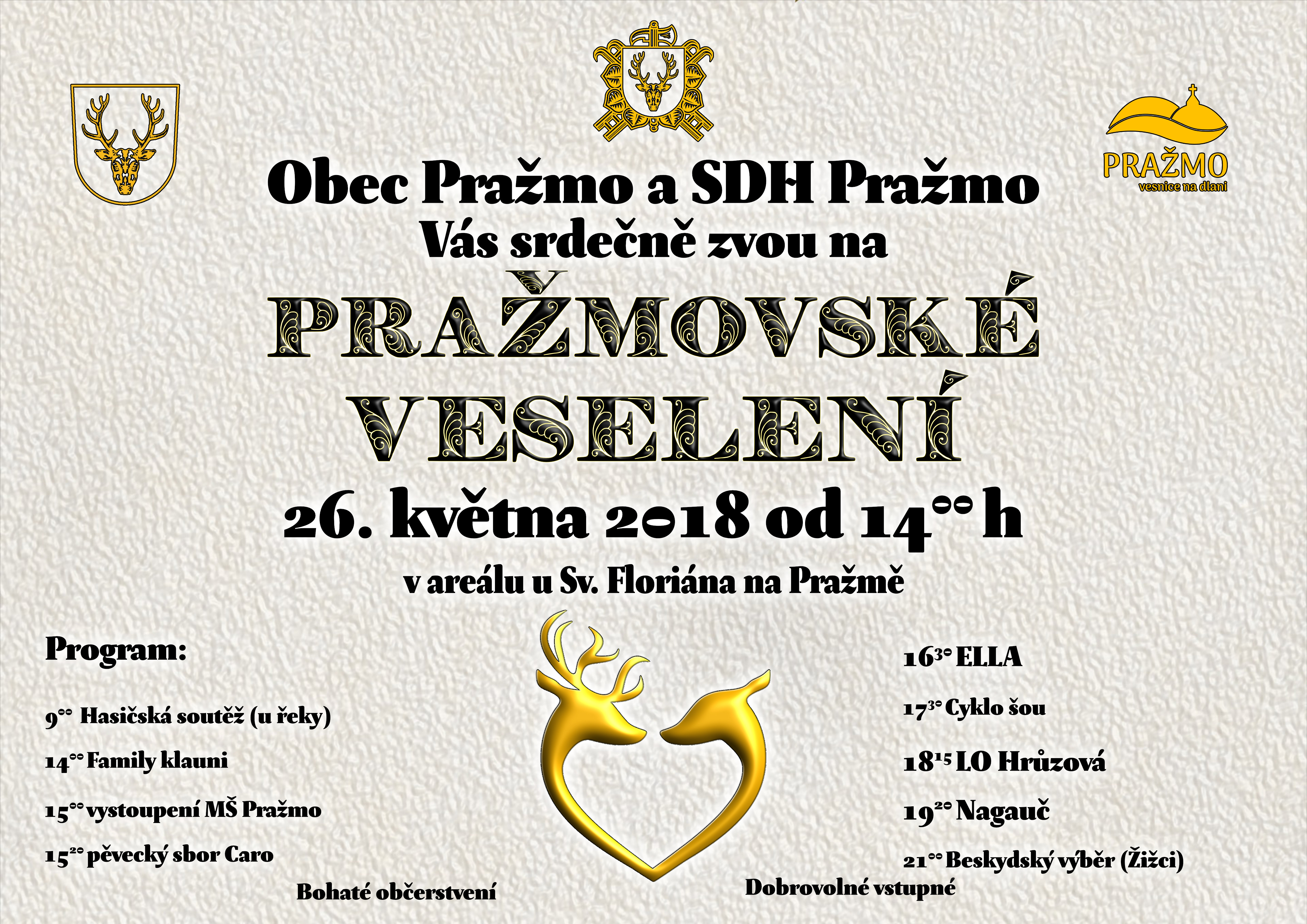 V sobotu 26. května 2018 od 14 hodin vás srdečně zveme na Pražmovské veselení.