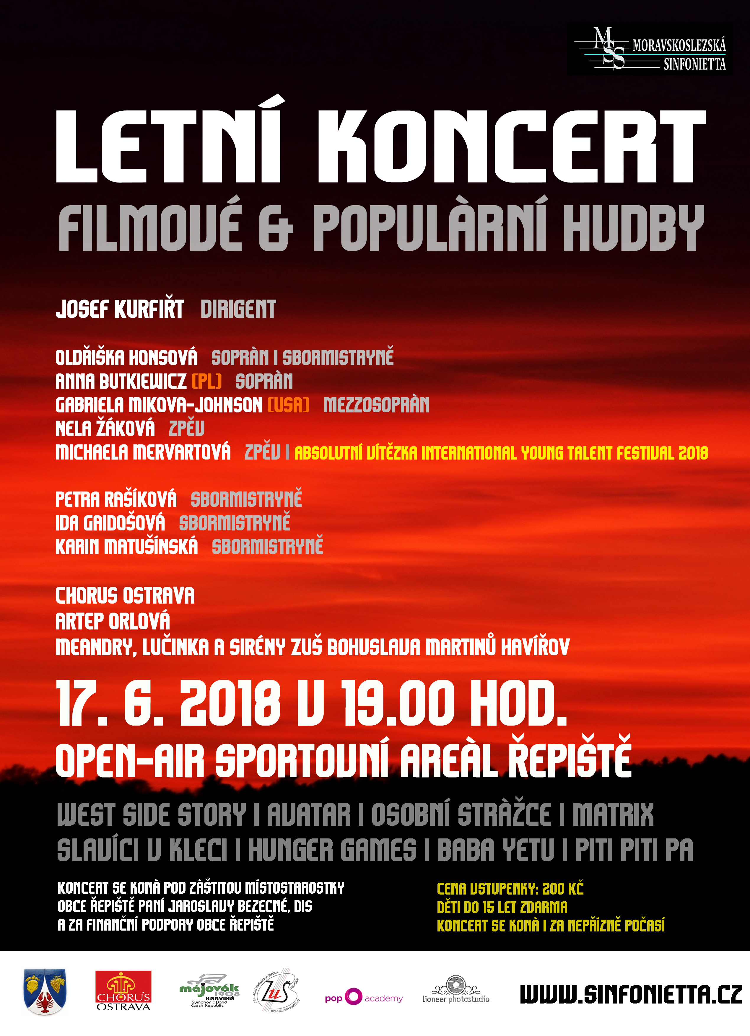 V neděli 17. června 2018 od 19 hodin Vás zveme na Letní koncert filmové a populární hudby Moravskoslezské sinfonietty.