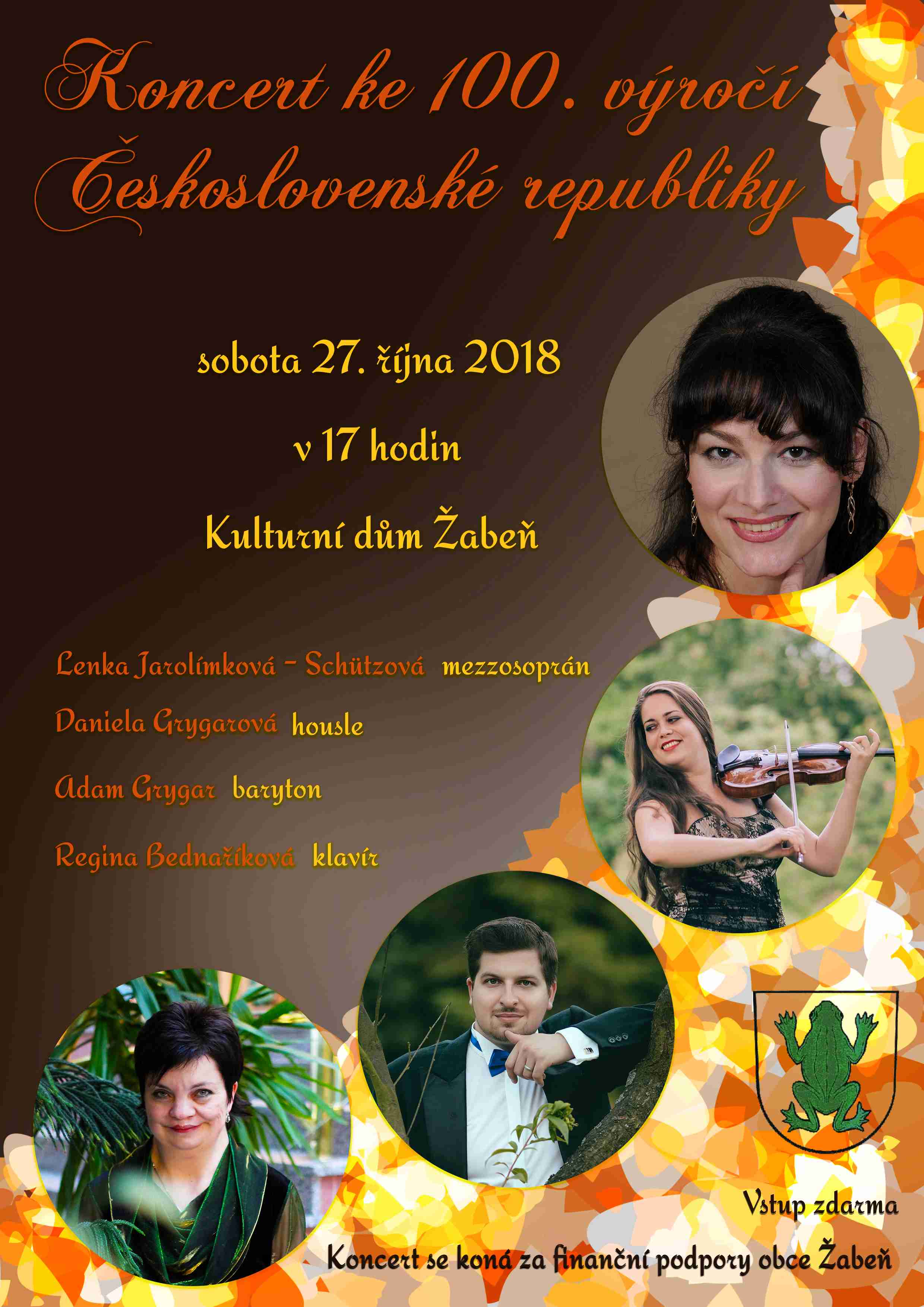 V sobotu 27. října 2018 od 17 hodin vás srdečně zveme na Koncert ke 100. výročí Československé republiky.