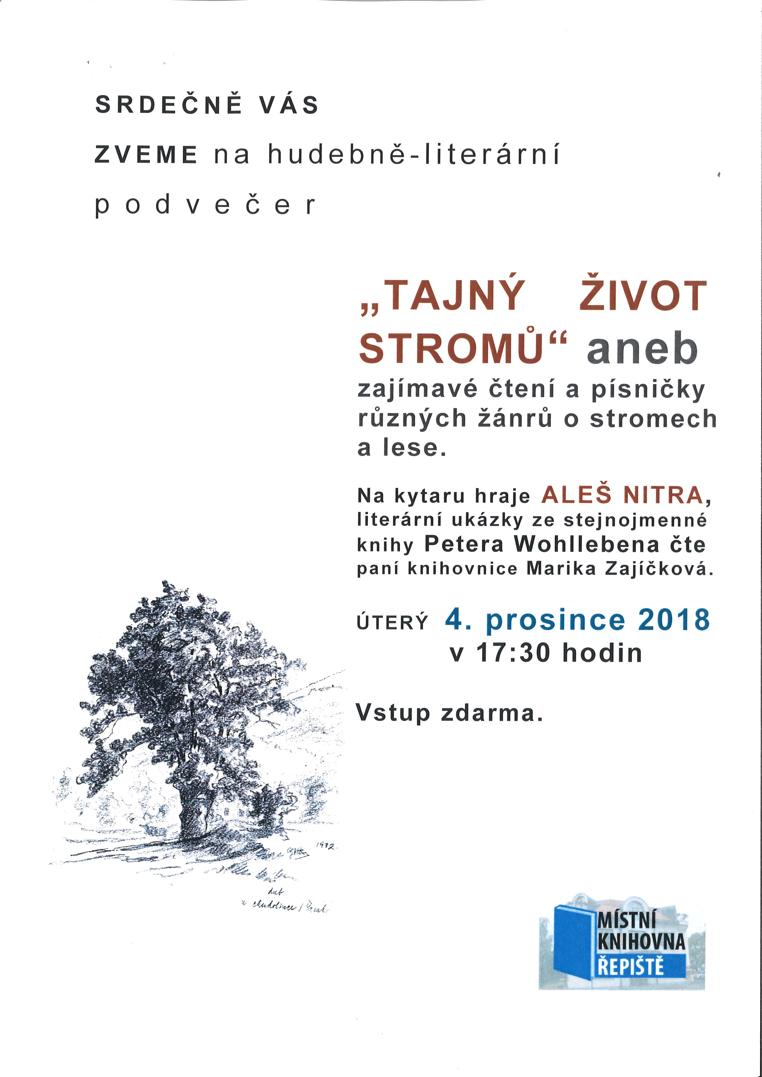 V úterý 4. prosince 2018 od 17:30 vás srdečně zveme na hudebně-literární podvečer, tentokrát na téma „Tajný život stromů"