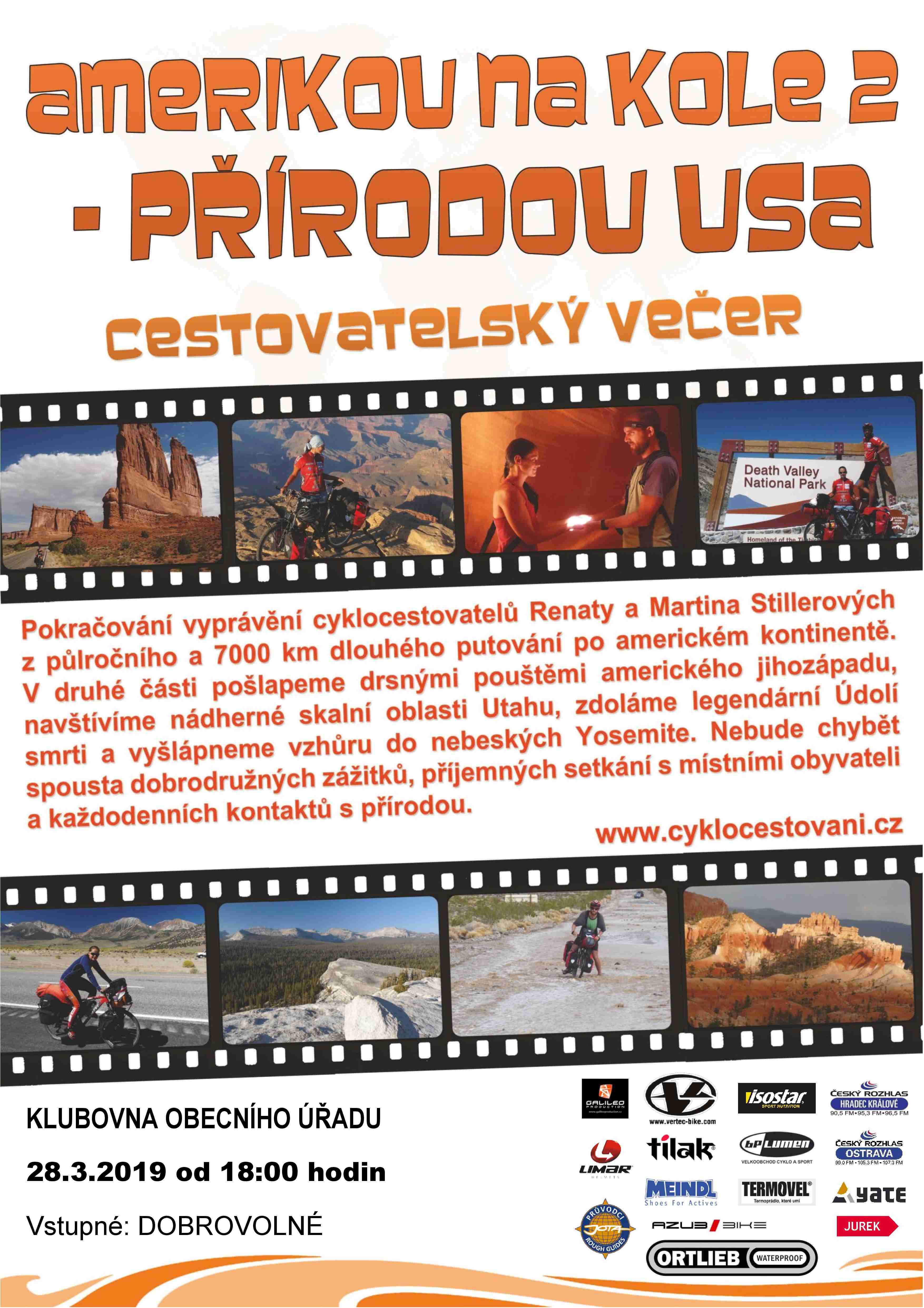 Ve čtvrtek 28. března 2019 vás zveme do Dobratic na cestovatelský večer "Amerikou na kole 2. - Přírodou USA.