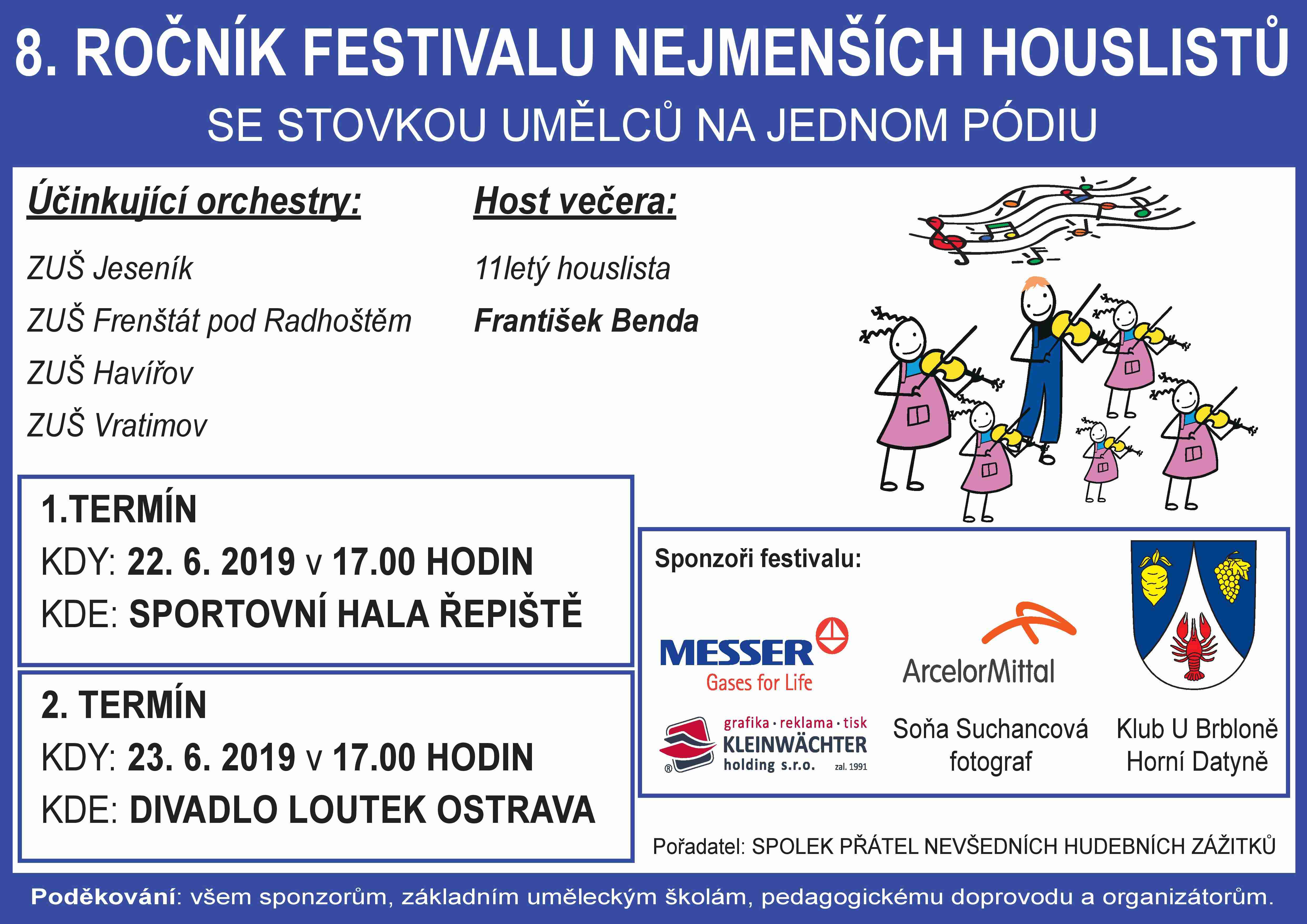 V sobotu 22. června 2019 od 16 hodin vás srdečně zveme na 8. ročník Festivalu nejmenších houslistů.