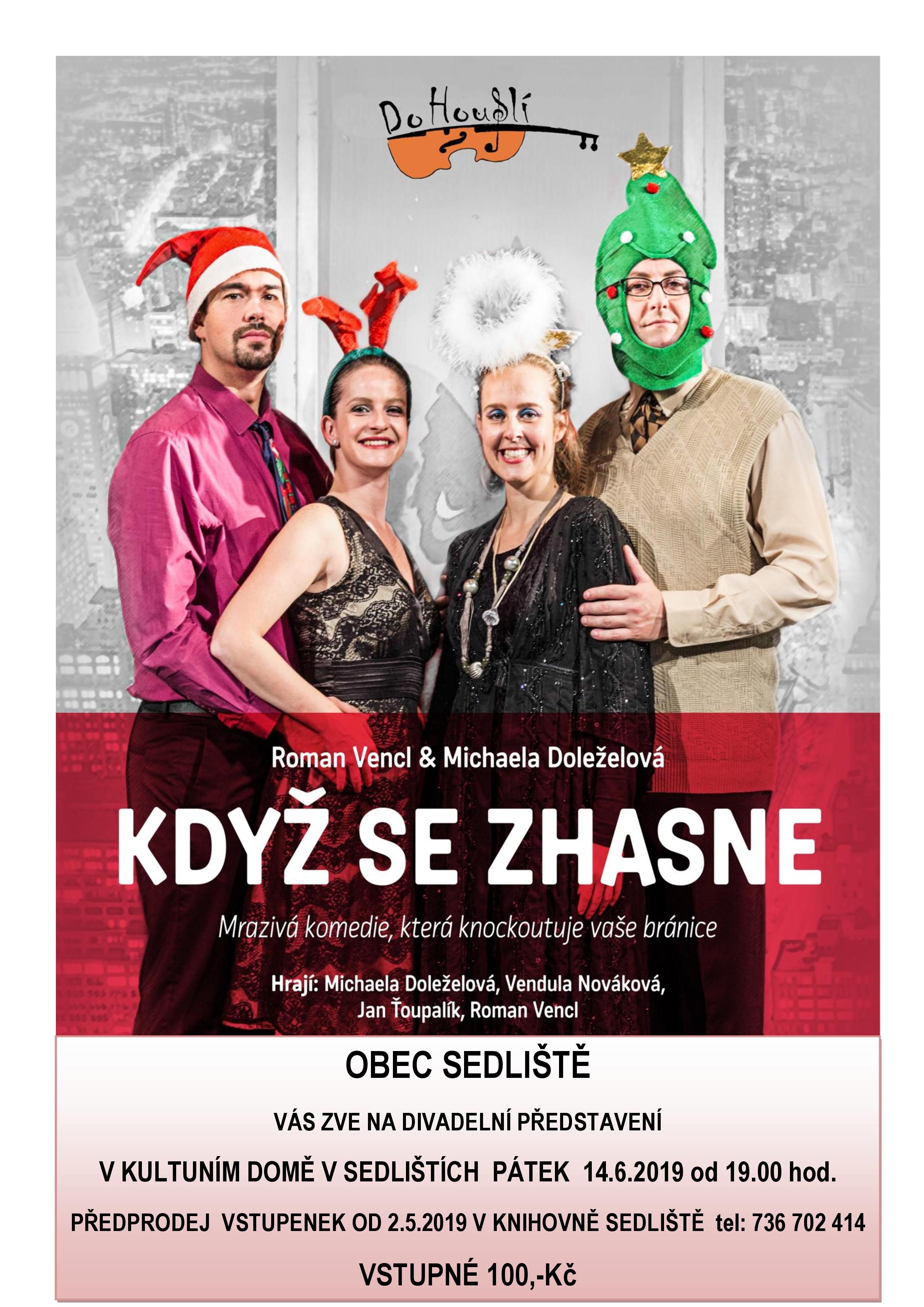 V pátek 14. června 2019 od 19 hodin vás srdečně zveme na představení Divadla do houslí "Když se zhasne".