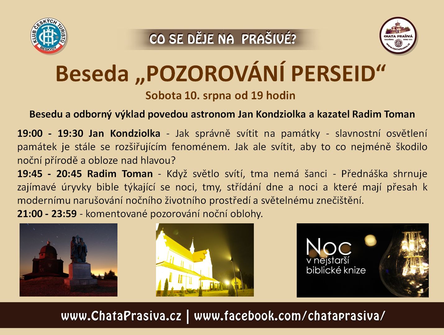 V sobotu 10. srpna 2019 od 19 hodin vás srdečně zveme na besedu s odorným výkladem Jana Kodziolka a Radima Tomana "Pozorování perseid".