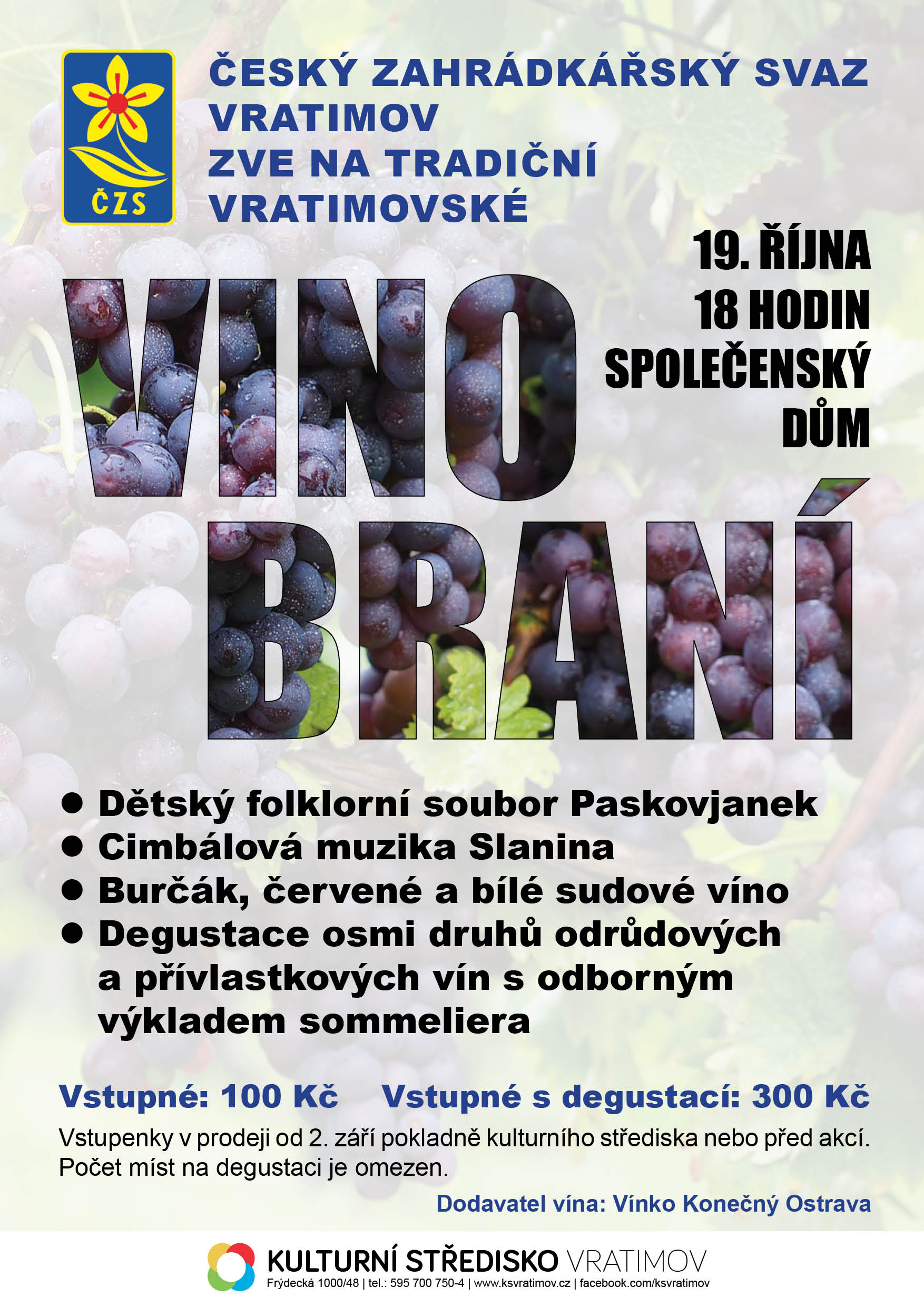 V sobotu 19. října 2019 od 18 hodin vás Český zahrádkářský svaz zve na tradiční vratimovské Vinobraní.