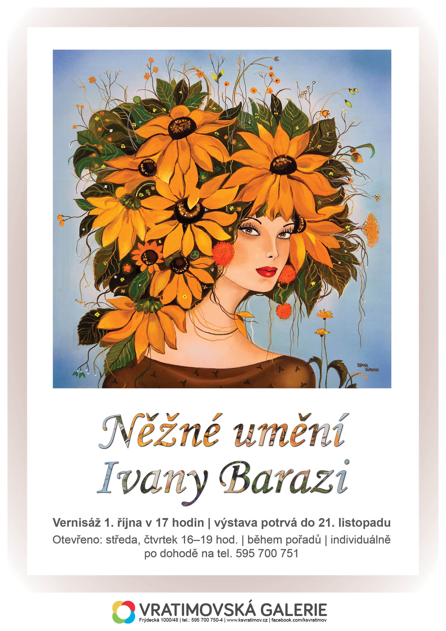 V úterý 1. října 2019 od 17 hodin vás zveme na vernisáž výstavy obrazů "Něžné umění" Ivany Barazi.