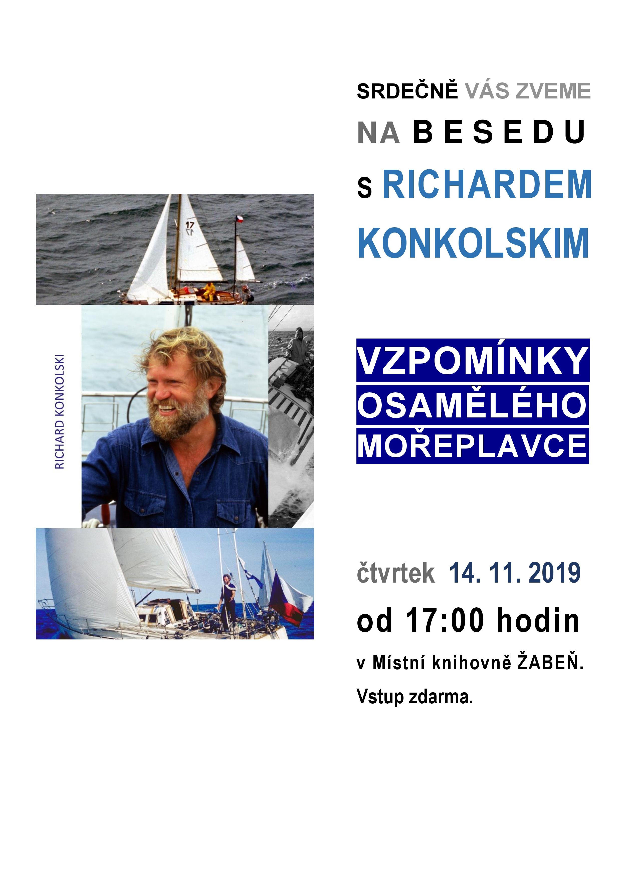Ve čtvrtek 14. listopadu 2019 od 17 hodin vás srdečně zveme na besedu s Richardem Konkolskim "Vzpomínky osamělého mořeplavce".