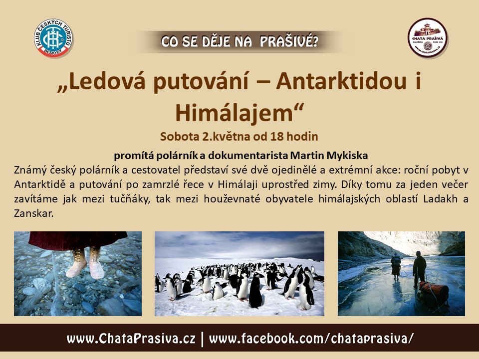 V sobotu 2. května 2020 od 18 hodin vás srdečně zveme na besedu a promítání polárníka a dokumentaristy Martina Mykisky "Antarktidou i Himalájem".