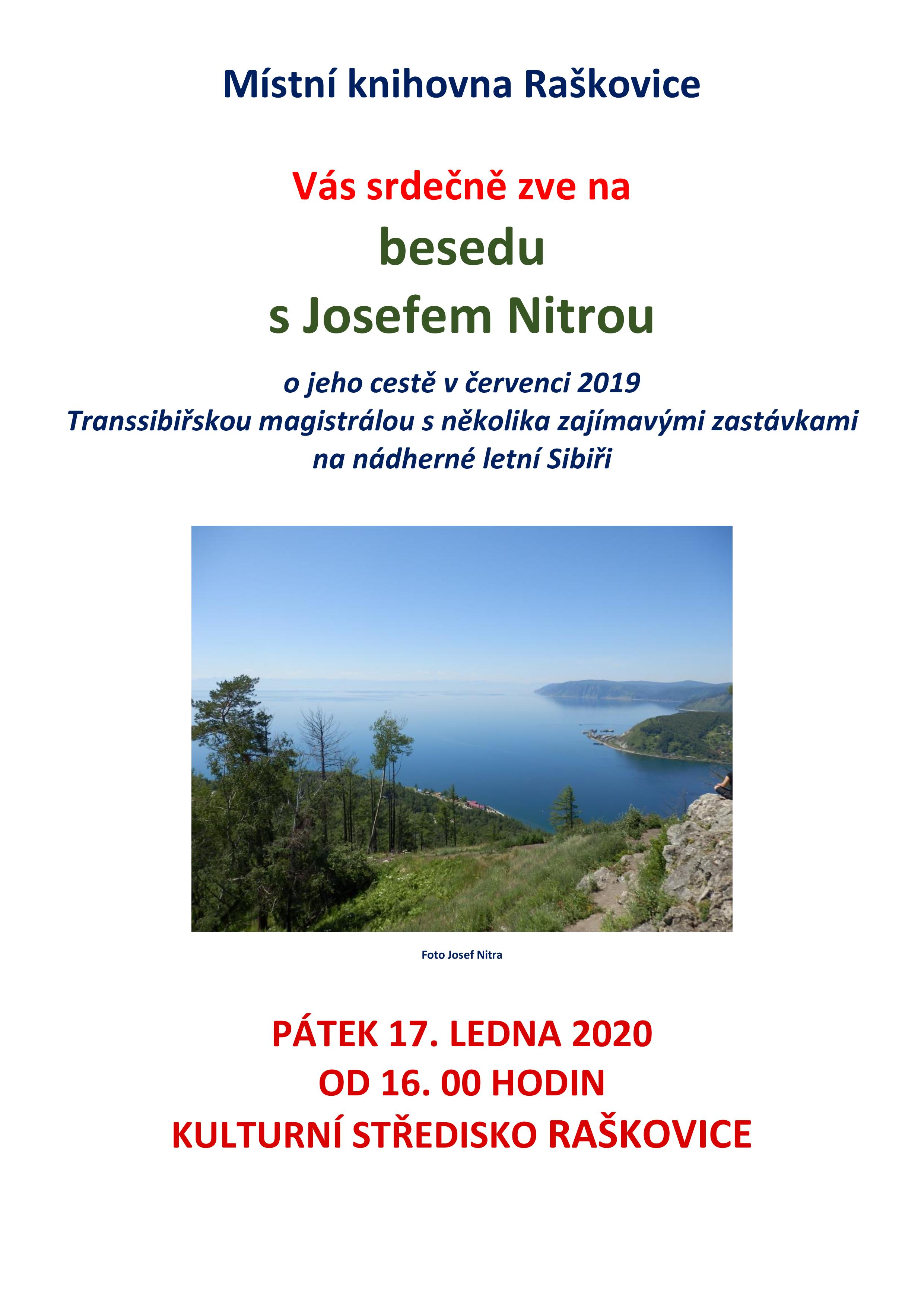 V pátek 17. ledna 2020 od 16:00 hodin vás srdečně zveme na besedu s Josefem Nitrou.
