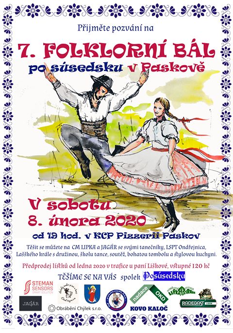 V sobotu 8. února 2020 vás srdečně zveme do Paskova na folklorní bál "Po súsedsku".