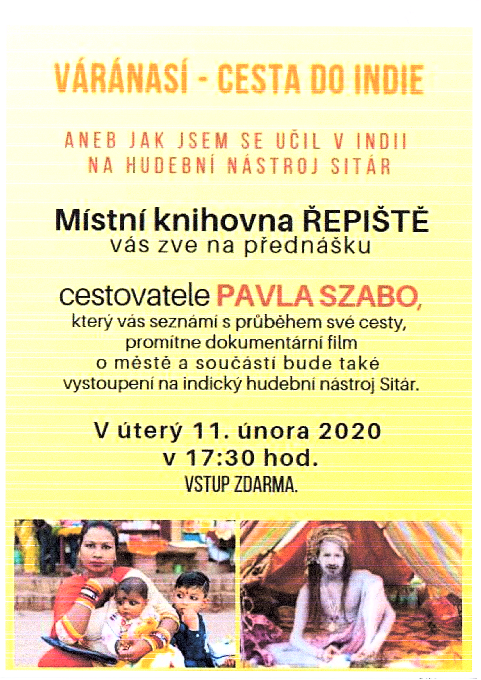 V úterý 11. února 2020 od 17:30 hodin vás srdečně zveme na přednášku cestovatele Pavla Szabo "Váránasí - cesta do Indie".