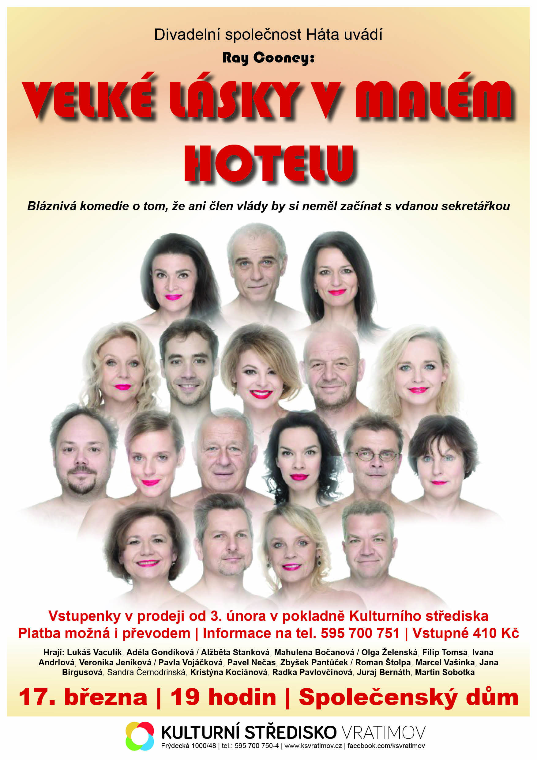 V úterý 17. března 2020 od 19 hodin vás srdečně zveme na představení divadelní společnosti Háta "Velké lásky v malém hotelu".