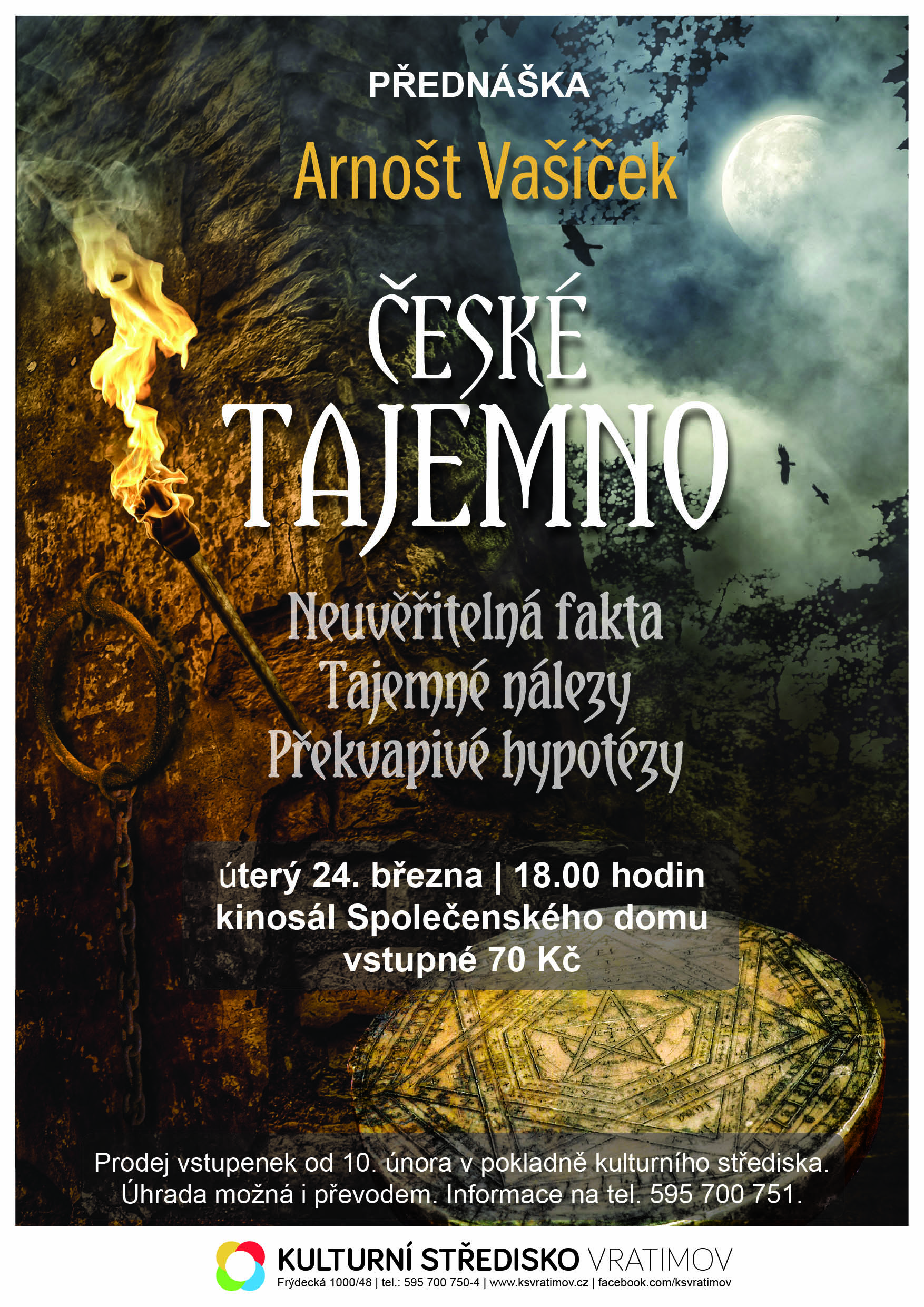 V úterý 24. března 2020 od 18 hodin vás srdečně zveme na přednášku Arnošta Vašíčka "České tajemno".