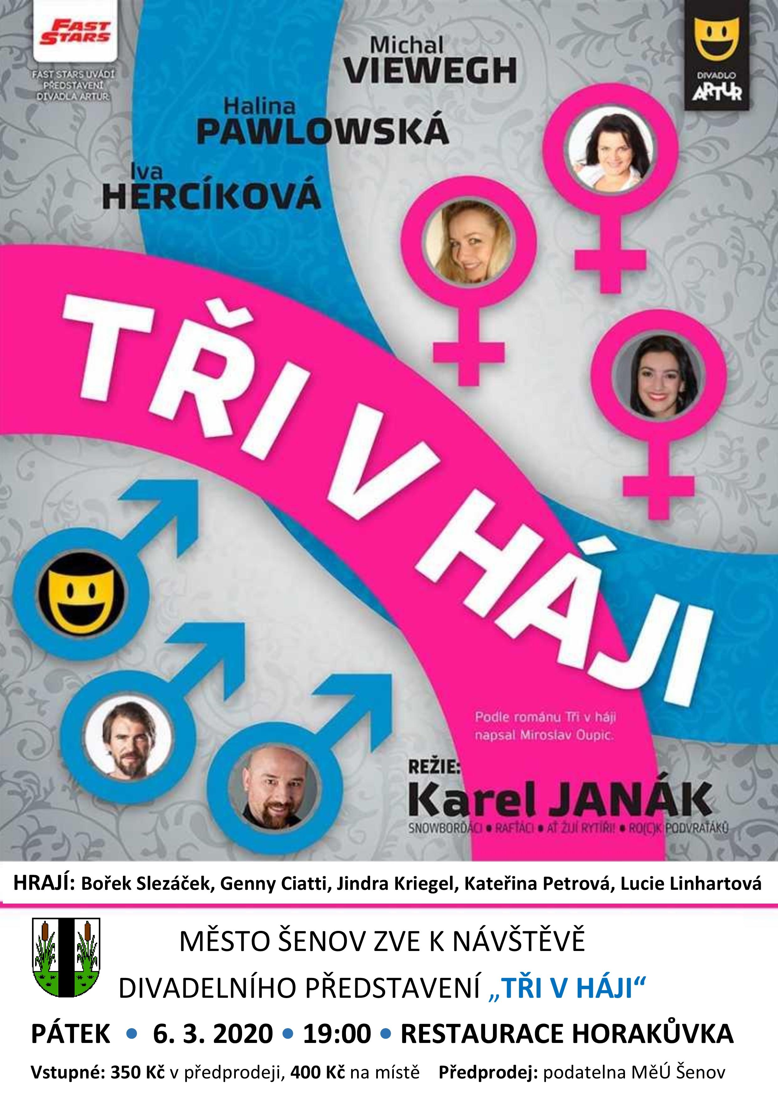 V pátek 6. března 2020 od 19 hodin vás srdečně zveme na divadelní představení "Tři v háji"