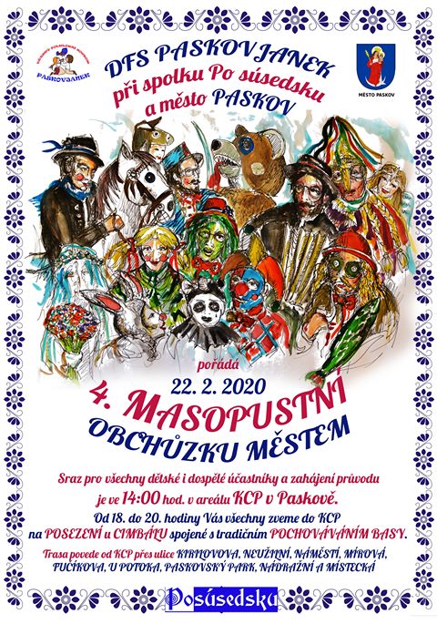 V sobotu 22. února 2020 od 14 hodin vás srdečně zveme do Paskova na 4. Masopustní obchůzku městem.