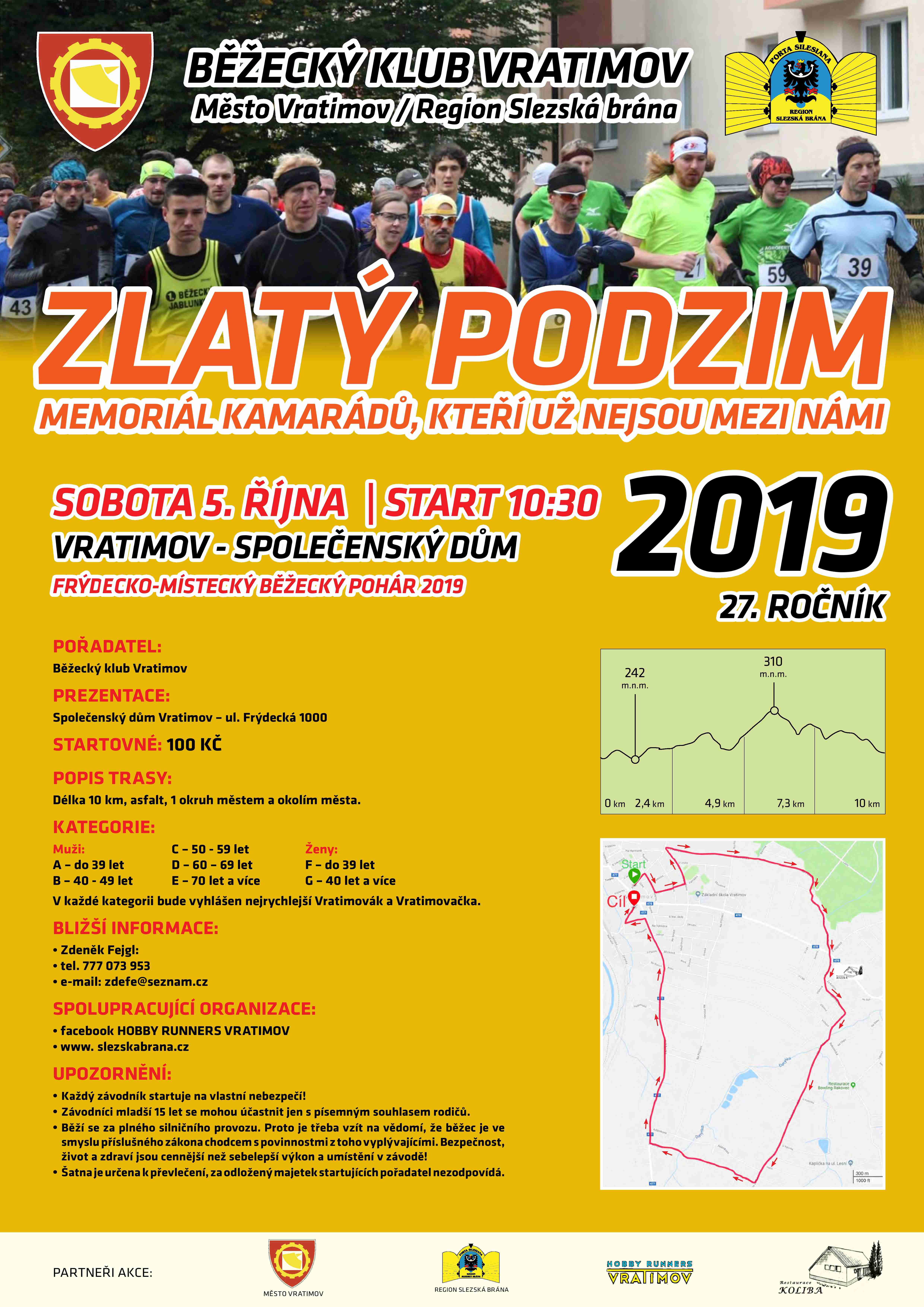 V sobotu 5. října 2019 vás srdečně zveme na běžecké závody "Zlatý podzim".