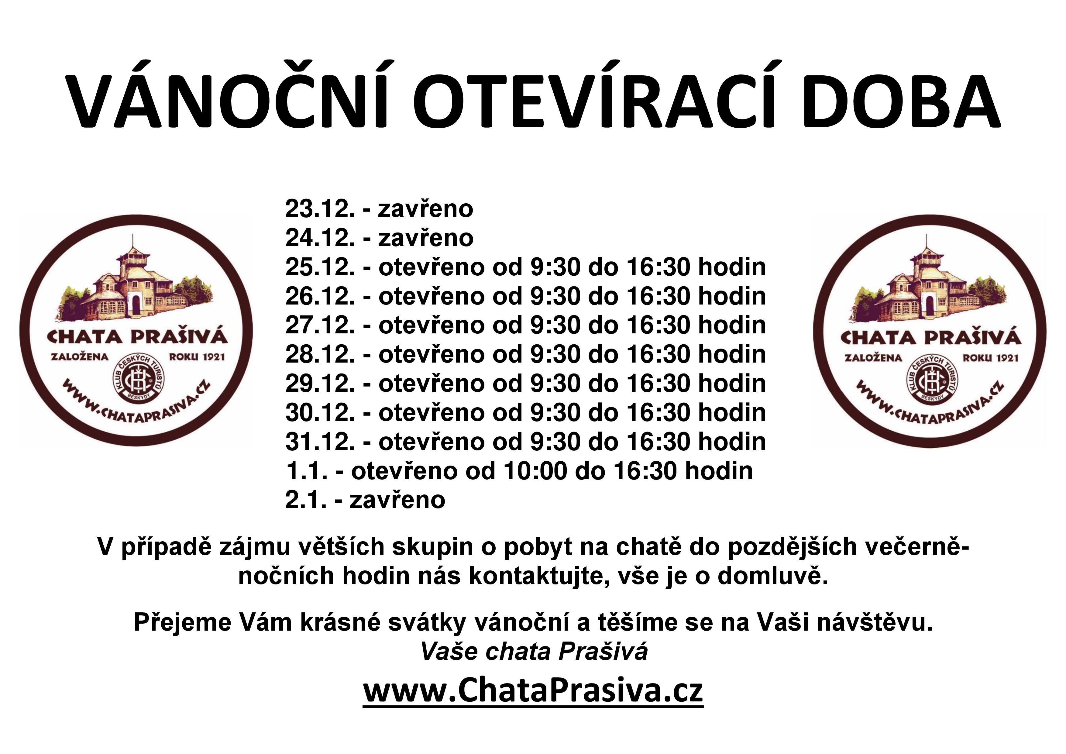 Chata Prašivá - Vánoční otevírací doba Vánoční otevírací doba v příloze. vysni-lhoty_prasiva_oteviraci-doba_vanoce-2019.jpg
