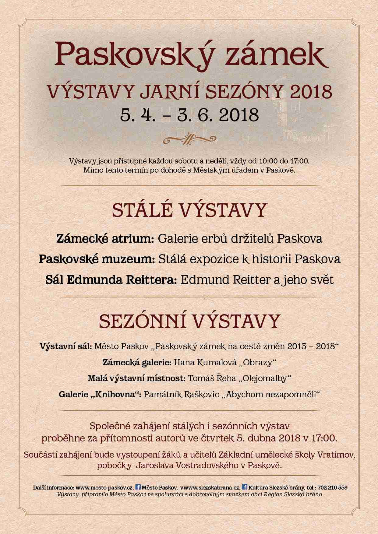 Ve čtvrtek 5. dubna 2018 od 17 hodin vás srdečně zveme na otevření "Jarní výstavní sezóny". Výstavy jsou přístupné každou sobotu a neděli od 10 do 17 hodin.