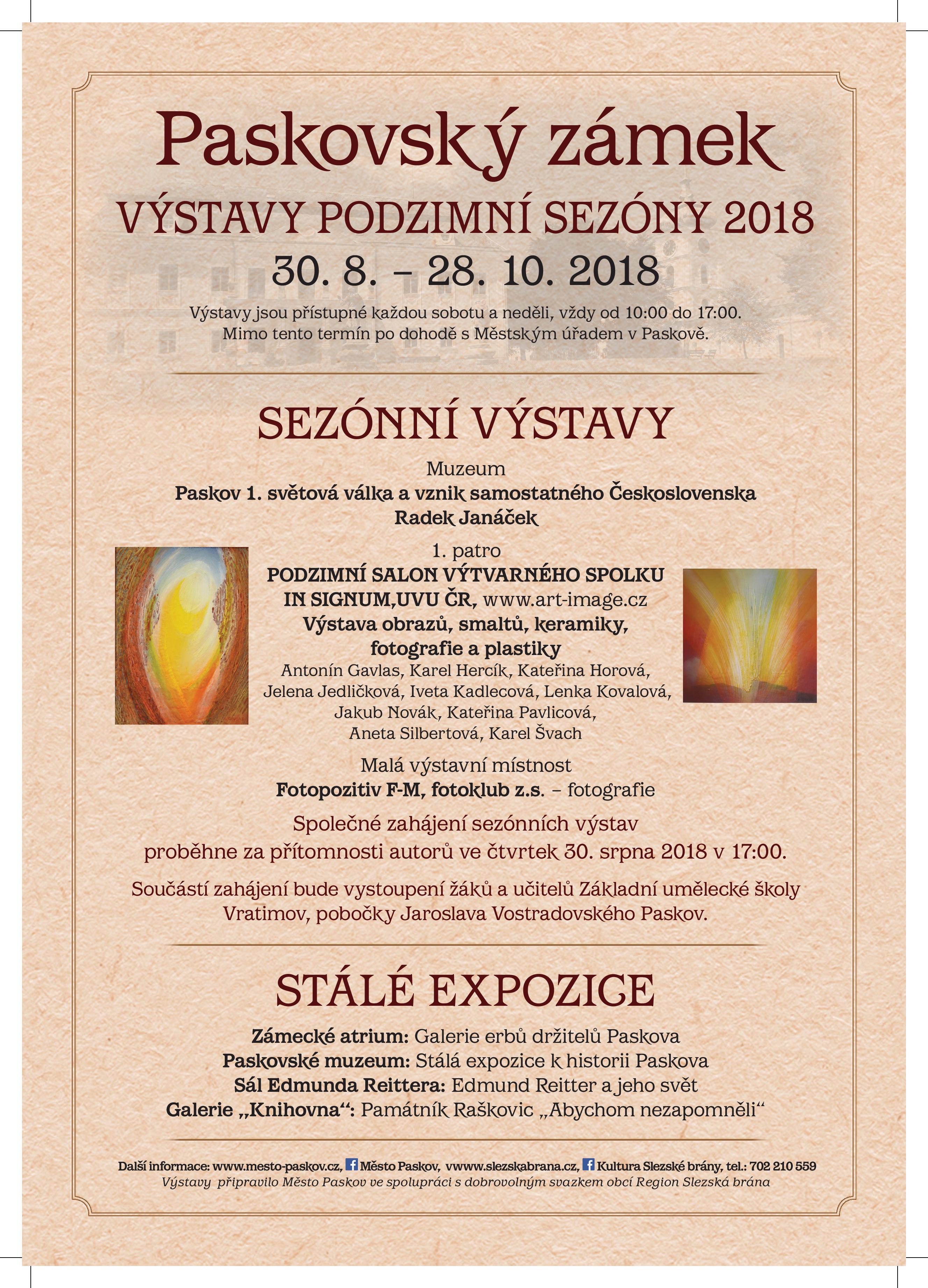 Paskov - Zámek - Výstavy podzimní sezóny