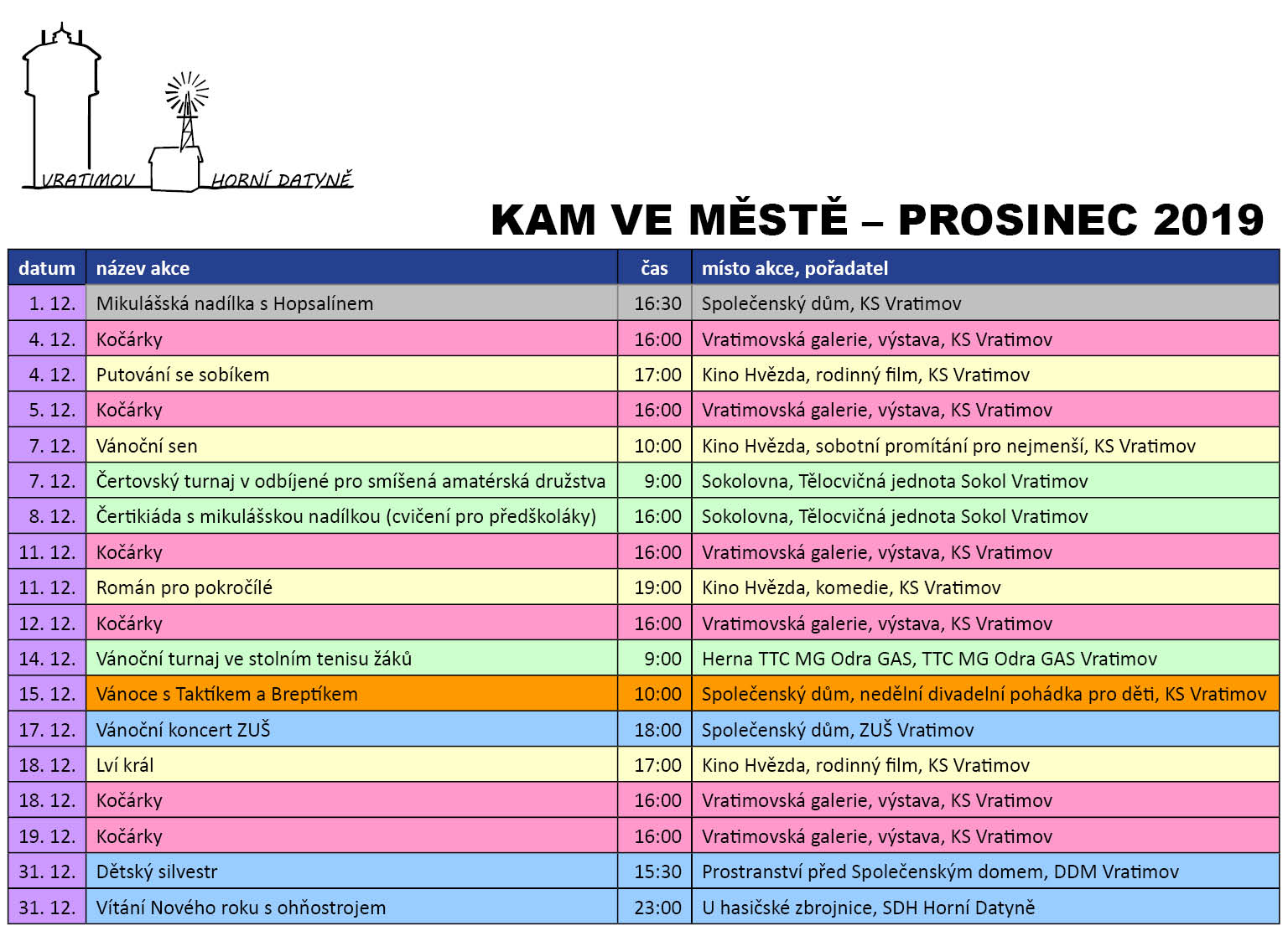 Kompletní nabídka akcí ve Vratimově v prosinci 2019.