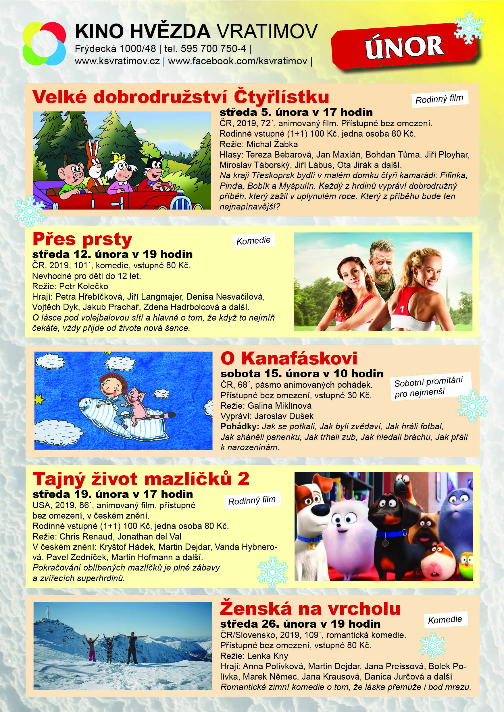 Vratimov - Kino Hvězda - Program únor Program kina Hvězda ve Vratimově na únor 2020.Více informací v přiloženém letáku. vratimov_kino_unor_2020.jpg