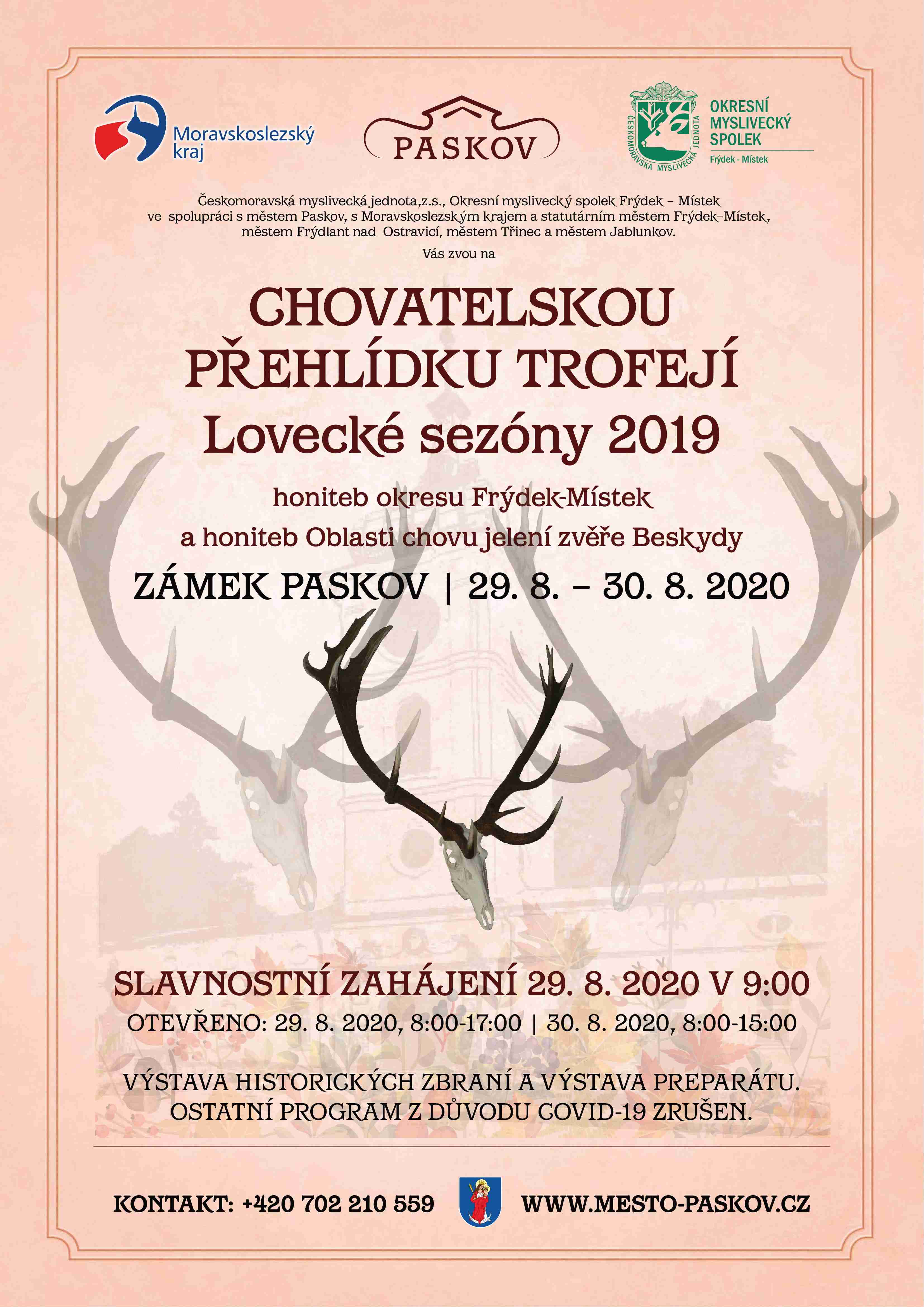 Od pátku 28. do neděle 30. srpna 2020 vás srdečně zveme do paskovského zámku na přehlídku trofejí lovecké sezóny 2019.