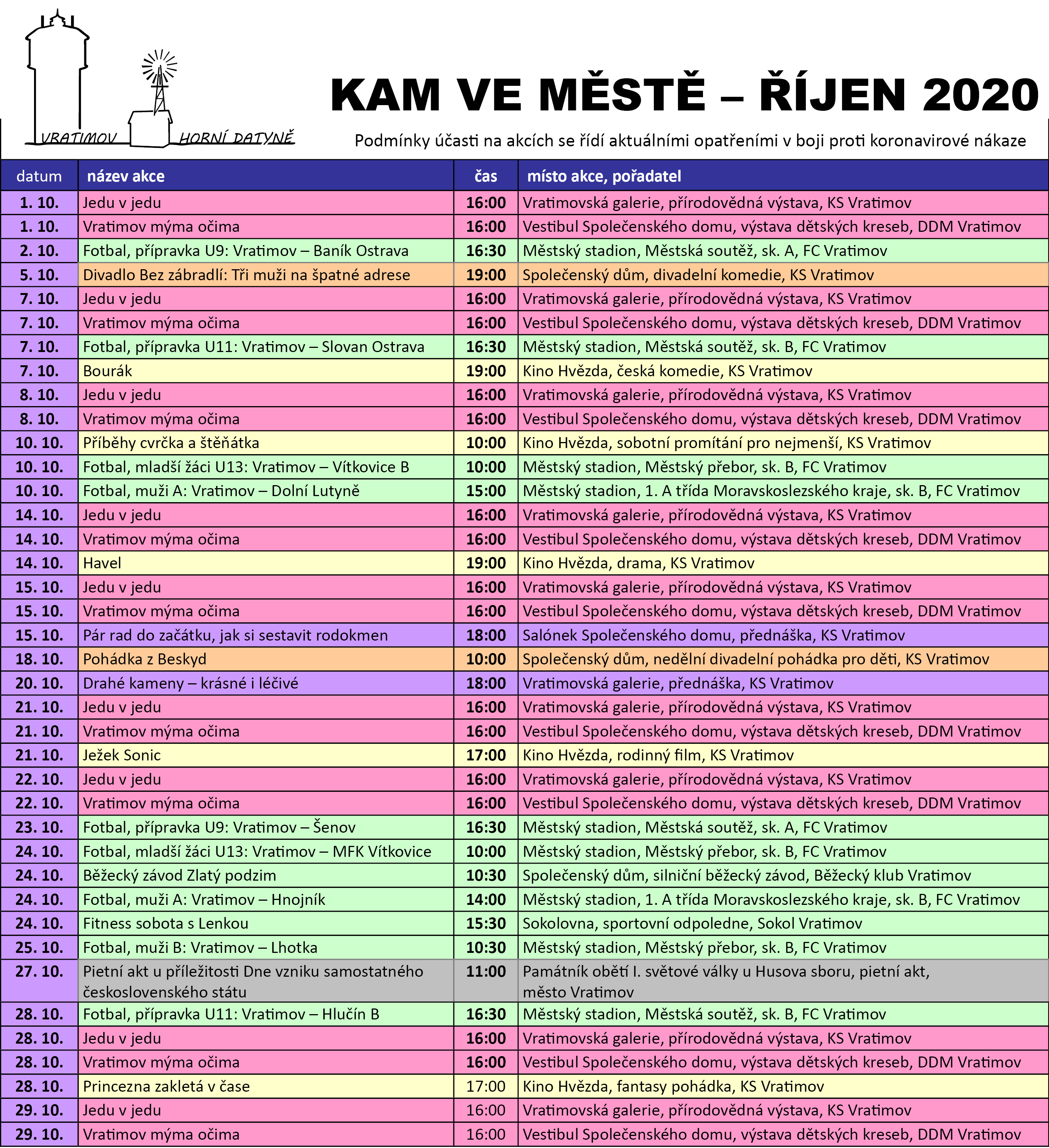 Kompletní nabídka akcí ve Vratimově v říjnu 2020.